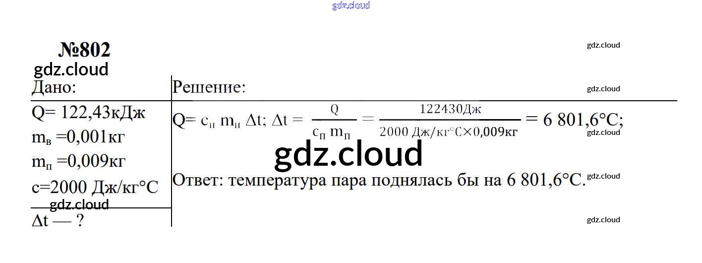 Ответ на задание 802 Сборник задач Физика за 7, 8, 9 (седьмой, восьмой, девятый) класс Перышкин, Лонцова УМК 2016