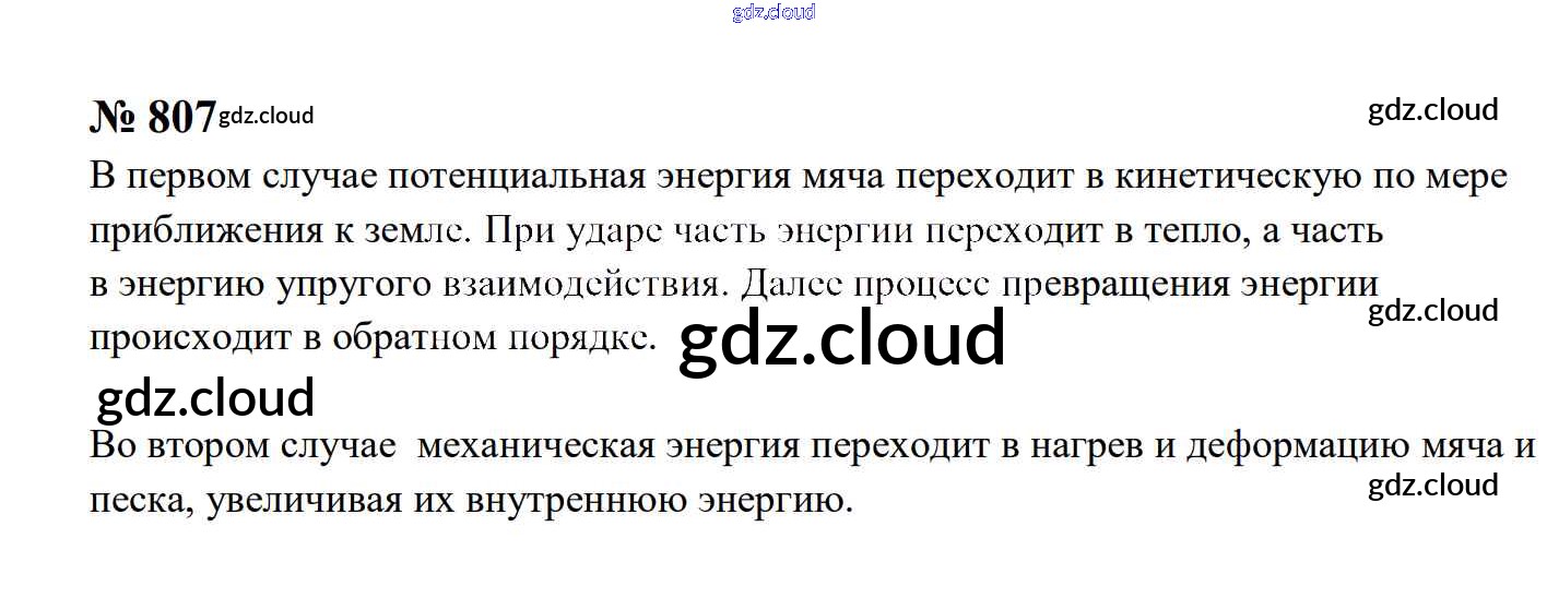 Ответ на задание 807 Сборник задач Физика за 7, 8, 9 (седьмой, восьмой, девятый) класс Перышкин, Лонцова УМК 2016