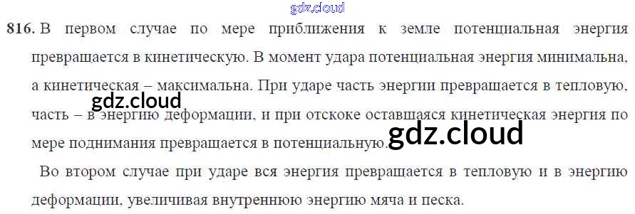Ответ на задание 816 Сборник задач Физика за 7, 8, 9 (седьмой, восьмой, девятый) класс Перышкин, Лонцова УМК 2016