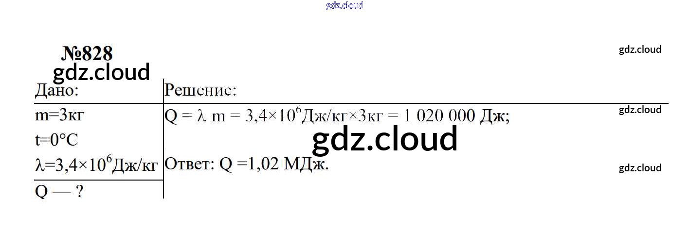 Ответ на задание 828 Сборник задач Физика за 7, 8, 9 (седьмой, восьмой, девятый) класс Перышкин, Лонцова УМК 2016