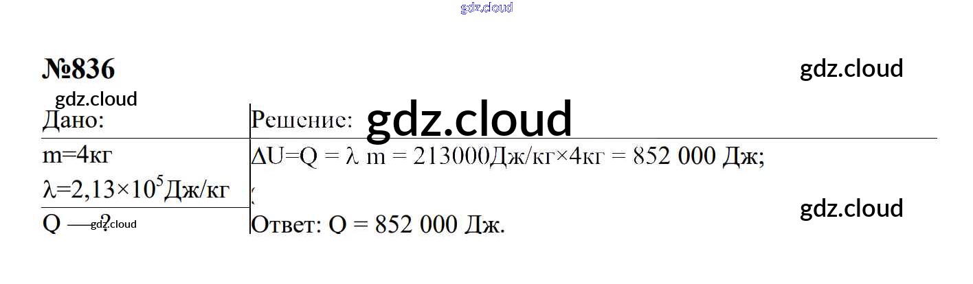 Ответ на задание 836 Сборник задач Физика за 7, 8, 9 (седьмой, восьмой, девятый) класс Перышкин, Лонцова УМК 2016
