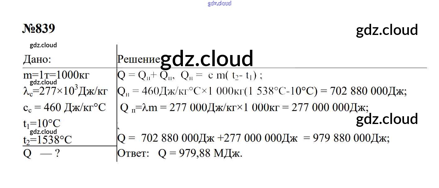 Ответ на задание 839 Сборник задач Физика за 7, 8, 9 (седьмой, восьмой, девятый) класс Перышкин, Лонцова УМК 2016