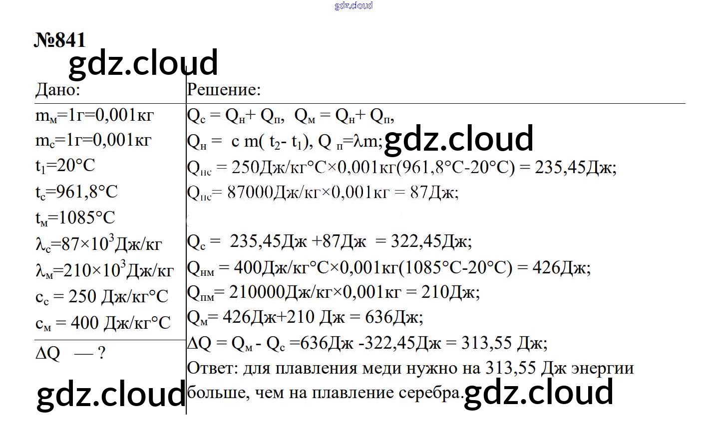 Ответ на задание 841 Сборник задач Физика за 7, 8, 9 (седьмой, восьмой, девятый) класс Перышкин, Лонцова УМК 2016