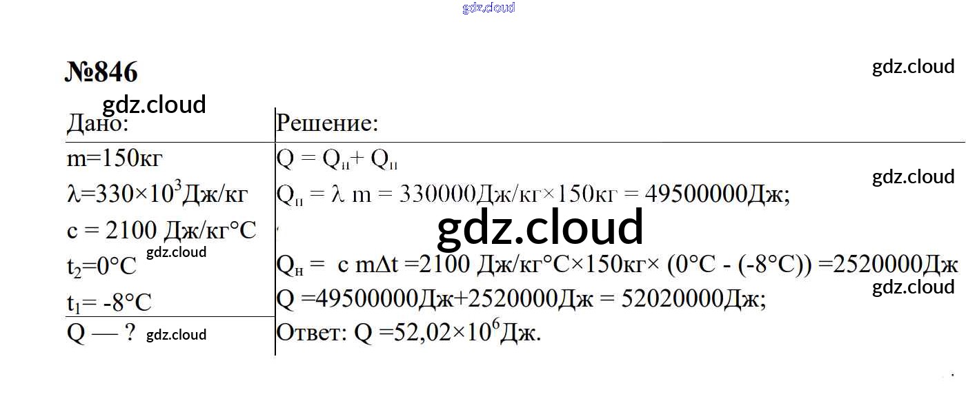 Ответ на задание 846 Сборник задач Физика за 7, 8, 9 (седьмой, восьмой, девятый) класс Перышкин, Лонцова УМК 2016