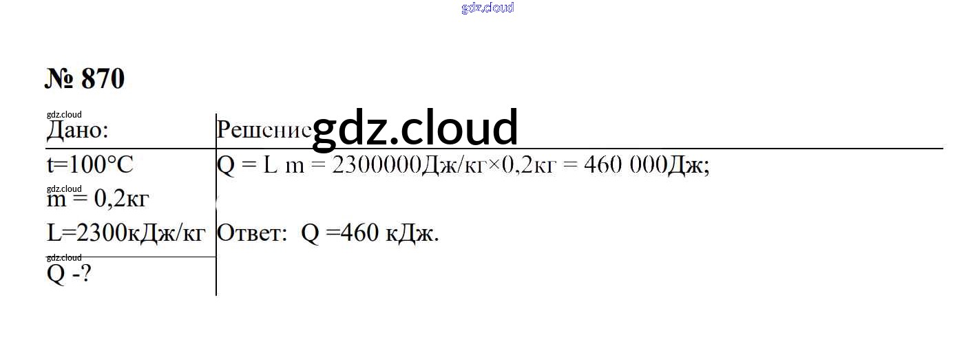 Ответ на задание 870 Сборник задач Физика за 7, 8, 9 (седьмой, восьмой, девятый) класс Перышкин, Лонцова УМК 2016