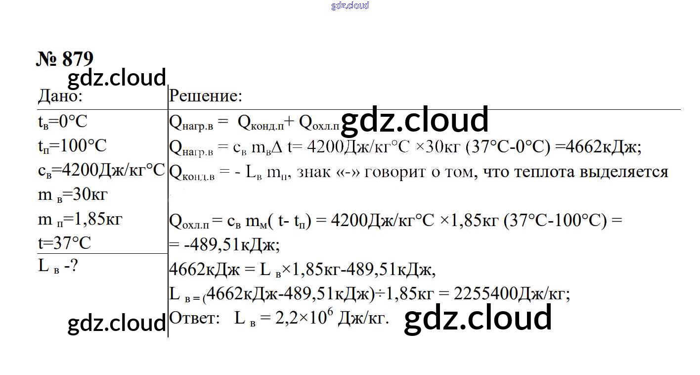Ответ на задание 879 Сборник задач Физика за 7, 8, 9 (седьмой, восьмой, девятый) класс Перышкин, Лонцова УМК 2016