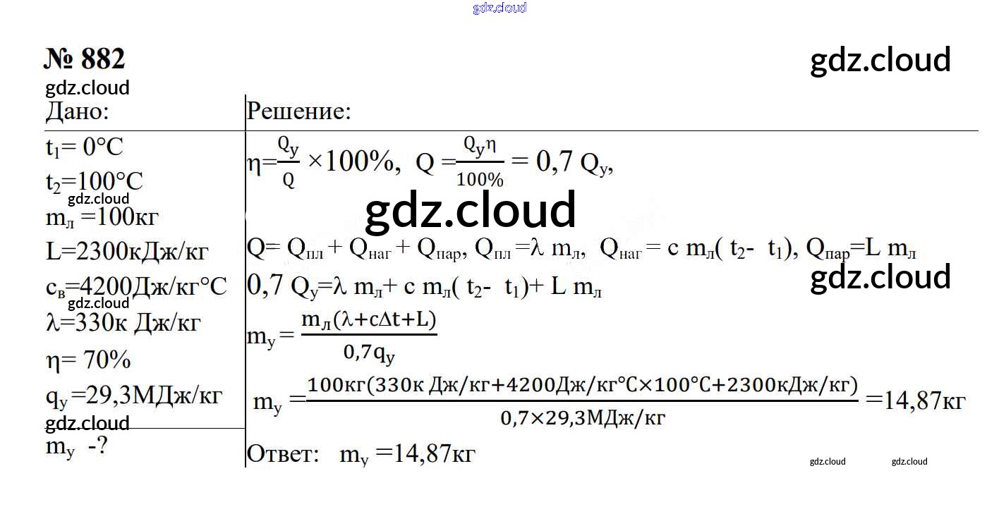 Ответ на задание 882 Сборник задач Физика за 7, 8, 9 (седьмой, восьмой, девятый) класс Перышкин, Лонцова УМК 2016