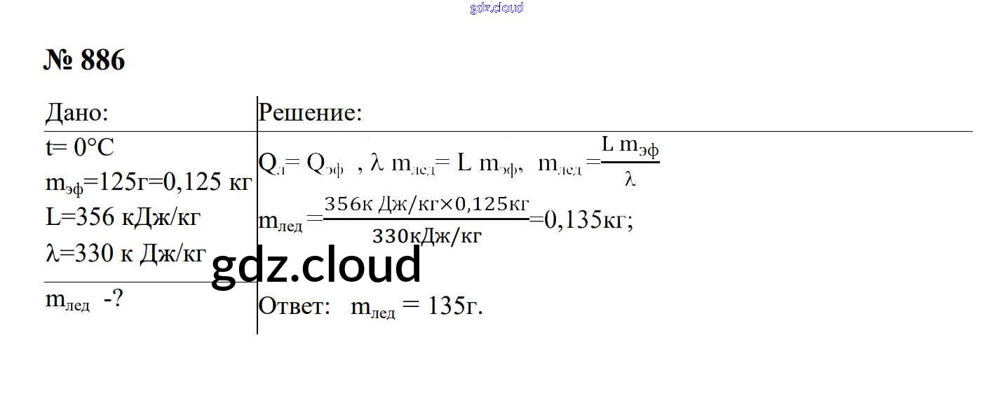 Ответ на задание 886 Сборник задач Физика за 7, 8, 9 (седьмой, восьмой, девятый) класс Перышкин, Лонцова УМК 2016
