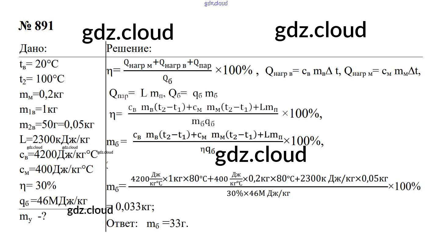 Ответ на задание 891 Сборник задач Физика за 7, 8, 9 (седьмой, восьмой, девятый) класс Перышкин, Лонцова УМК 2016