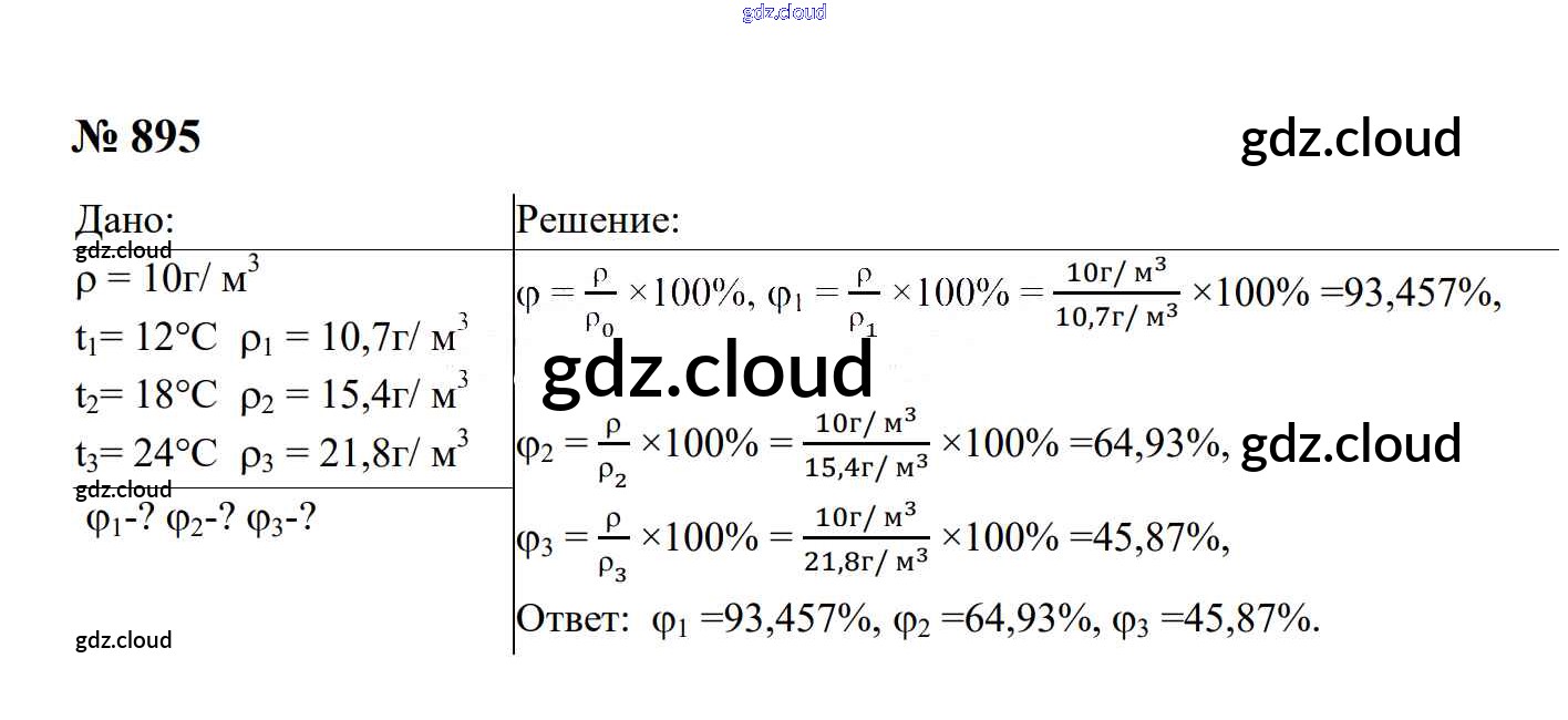 Ответ на задание 895 Сборник задач Физика за 7, 8, 9 (седьмой, восьмой, девятый) класс Перышкин, Лонцова УМК 2016