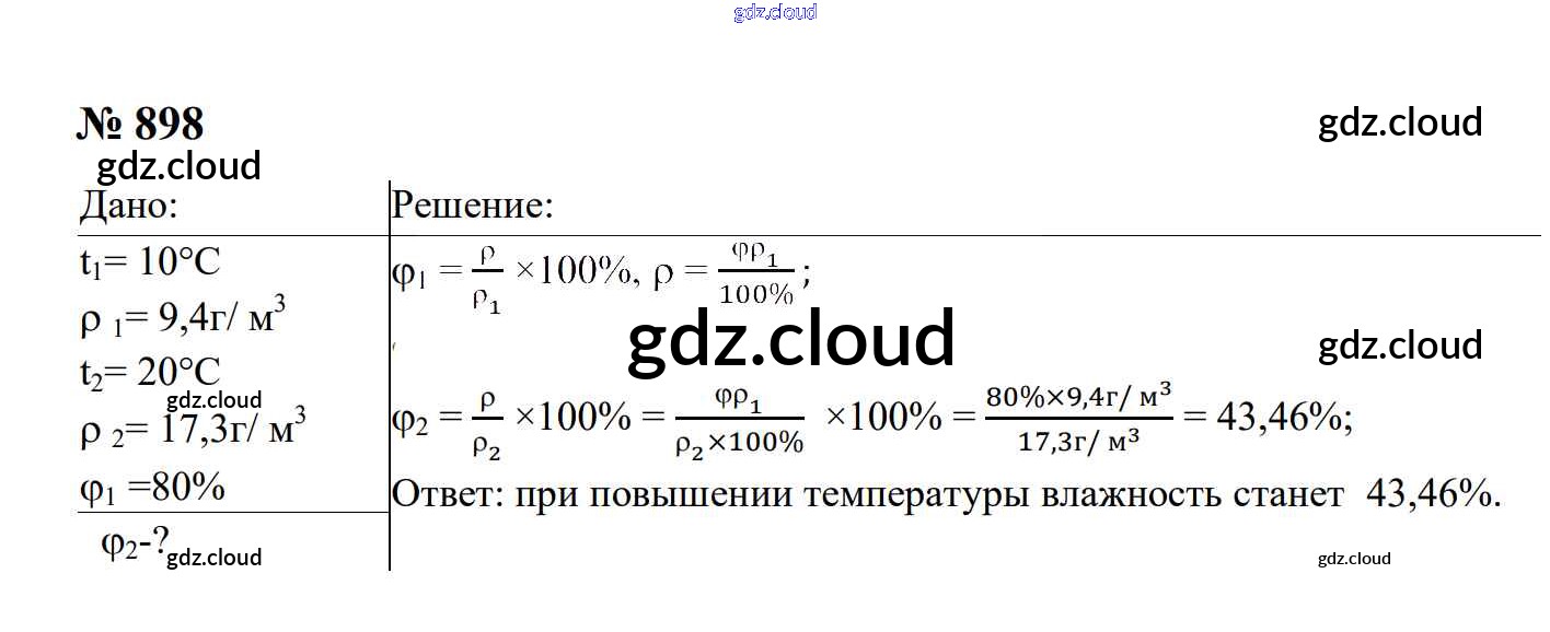 Ответ на задание 898 Сборник задач Физика за 7, 8, 9 (седьмой, восьмой, девятый) класс Перышкин, Лонцова УМК 2016