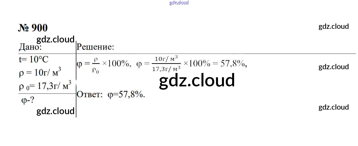 Ответ на задание 900 Сборник задач Физика за 7, 8, 9 (седьмой, восьмой, девятый) класс Перышкин, Лонцова УМК 2016