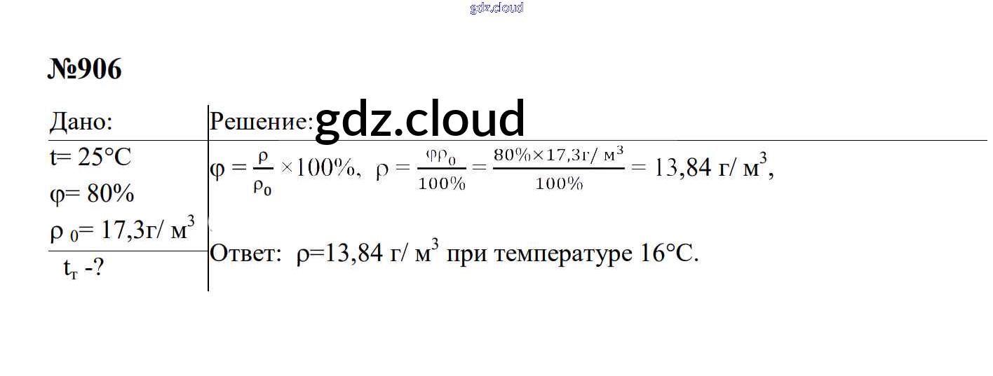 Ответ на задание 906 Сборник задач Физика за 7, 8, 9 (седьмой, восьмой, девятый) класс Перышкин, Лонцова УМК 2016