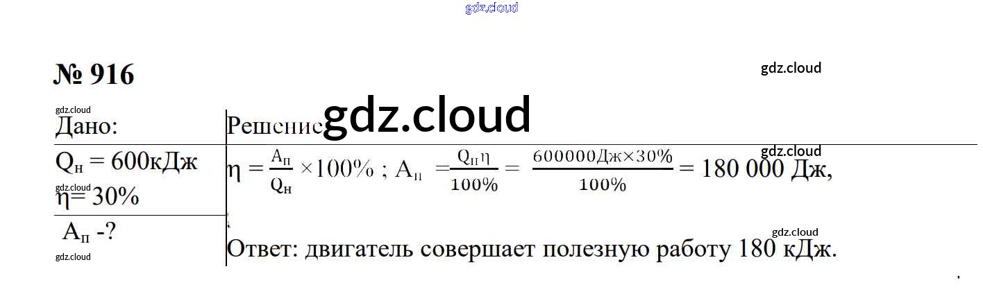 Ответ на задание 916 Сборник задач Физика за 7, 8, 9 (седьмой, восьмой, девятый) класс Перышкин, Лонцова УМК 2016