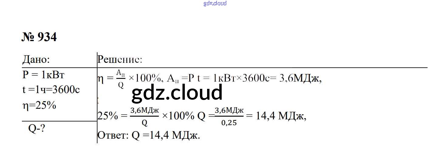 Ответ на задание 934 Сборник задач Физика за 7, 8, 9 (седьмой, восьмой, девятый) класс Перышкин, Лонцова УМК 2016