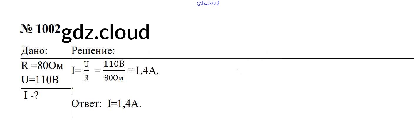 Ответ на задание 1002 Сборник задач Физика за 7, 8, 9 (седьмой, восьмой, девятый) класс Перышкин, Лонцова УМК 2016