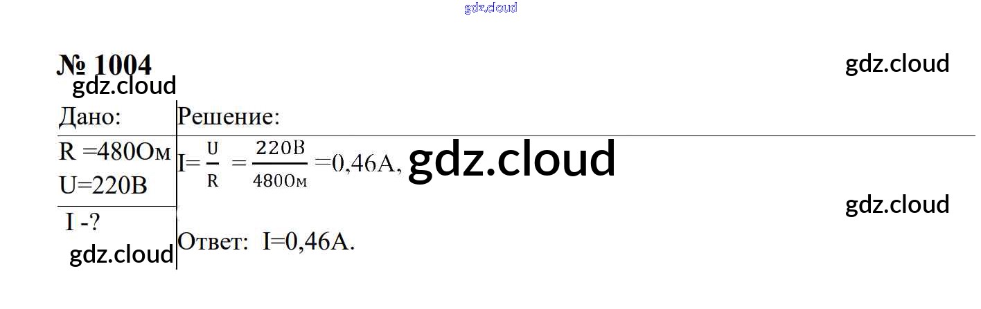 Ответ на задание 1004 Сборник задач Физика за 7, 8, 9 (седьмой, восьмой, девятый) класс Перышкин, Лонцова УМК 2016
