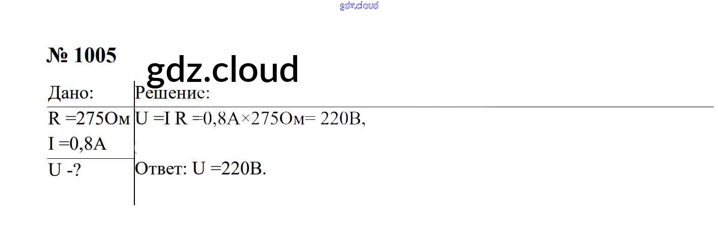 Ответ на задание 1005 Сборник задач Физика за 7, 8, 9 (седьмой, восьмой, девятый) класс Перышкин, Лонцова УМК 2016