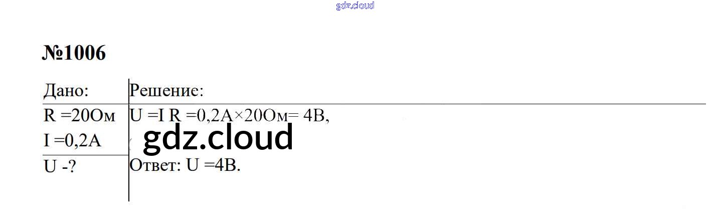 Ответ на задание 1006 Сборник задач Физика за 7, 8, 9 (седьмой, восьмой, девятый) класс Перышкин, Лонцова УМК 2016