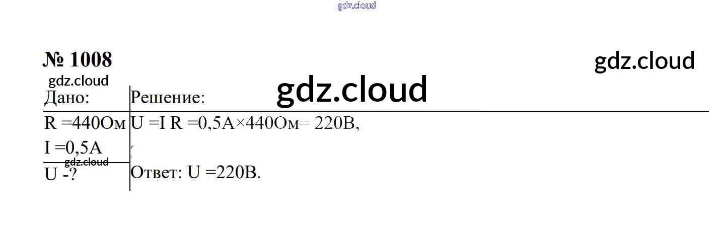 Ответ на задание 1008 Сборник задач Физика за 7, 8, 9 (седьмой, восьмой, девятый) класс Перышкин, Лонцова УМК 2016