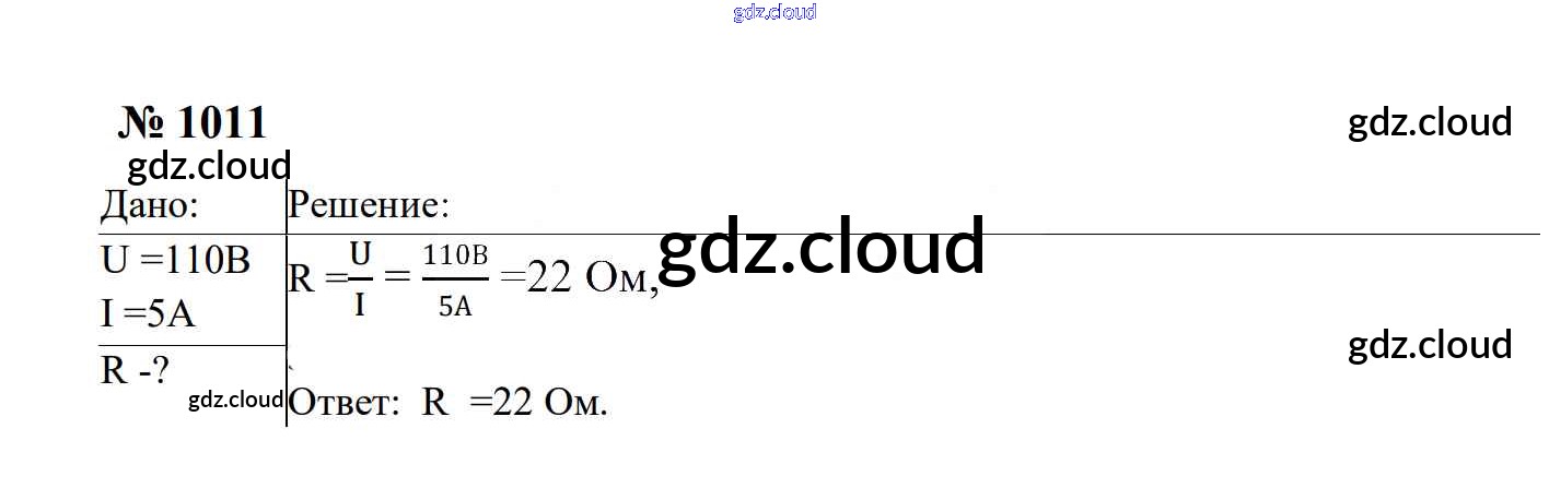 Ответ на задание 1011 Сборник задач Физика за 7, 8, 9 (седьмой, восьмой, девятый) класс Перышкин, Лонцова УМК 2016