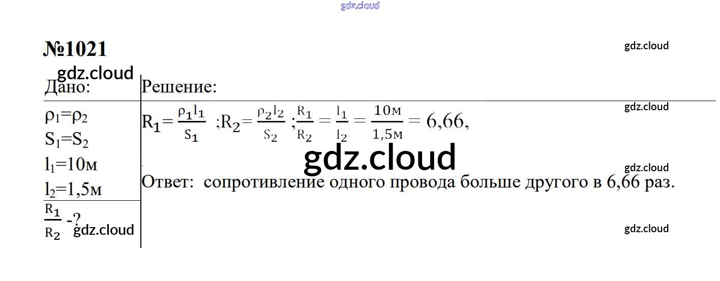 Ответ на задание 1021 Сборник задач Физика за 7, 8, 9 (седьмой, восьмой, девятый) класс Перышкин, Лонцова УМК 2016