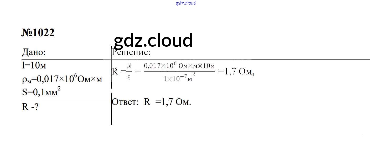 Ответ на задание 1022 Сборник задач Физика за 7, 8, 9 (седьмой, восьмой, девятый) класс Перышкин, Лонцова УМК 2016