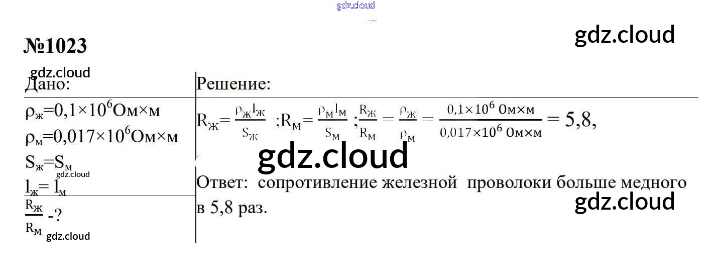 Ответ на задание 1023 Сборник задач Физика за 7, 8, 9 (седьмой, восьмой, девятый) класс Перышкин, Лонцова УМК 2016