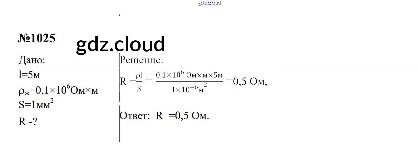 Ответ на задание 1025 Сборник задач Физика за 7, 8, 9 (седьмой, восьмой, девятый) класс Перышкин, Лонцова УМК 2016