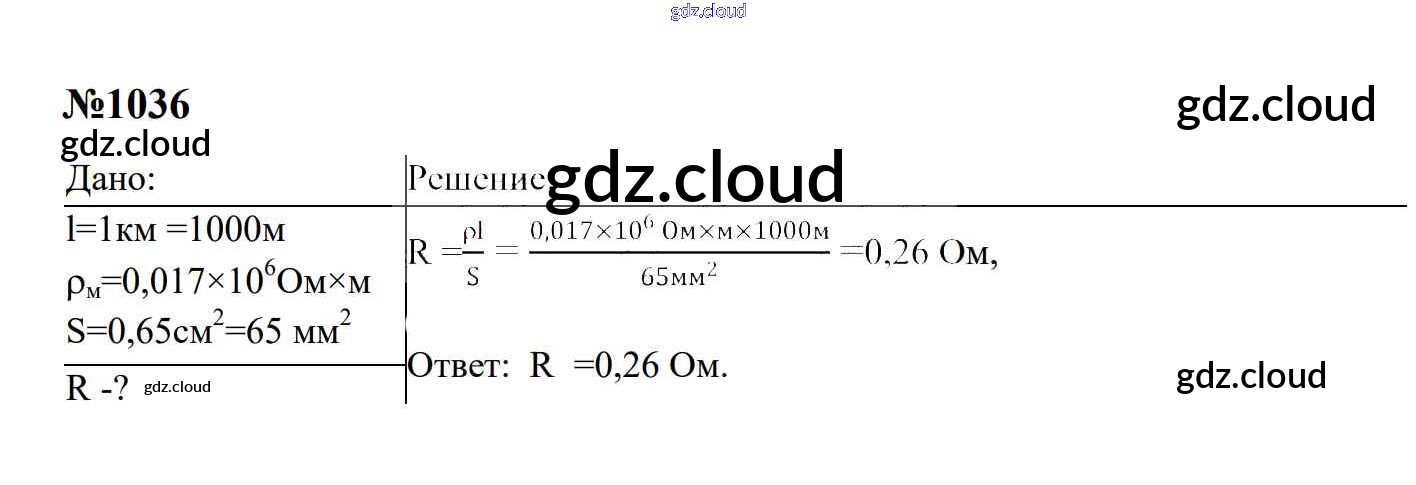 Ответ на задание 1036 Сборник задач Физика за 7, 8, 9 (седьмой, восьмой, девятый) класс Перышкин, Лонцова УМК 2016