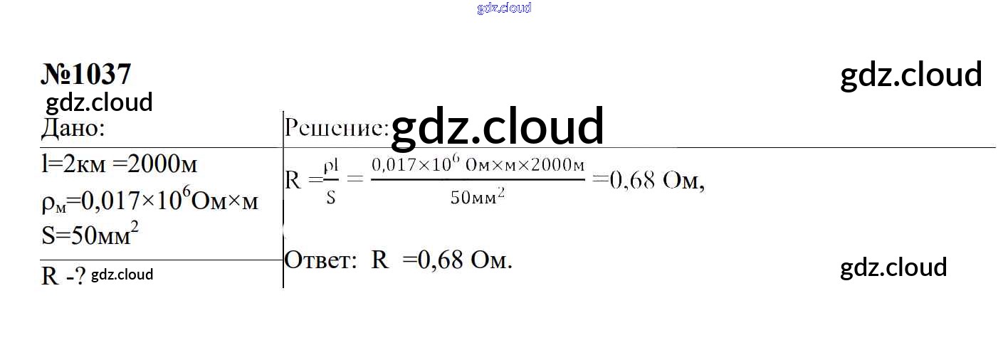 Ответ на задание 1037 Сборник задач Физика за 7, 8, 9 (седьмой, восьмой, девятый) класс Перышкин, Лонцова УМК 2016