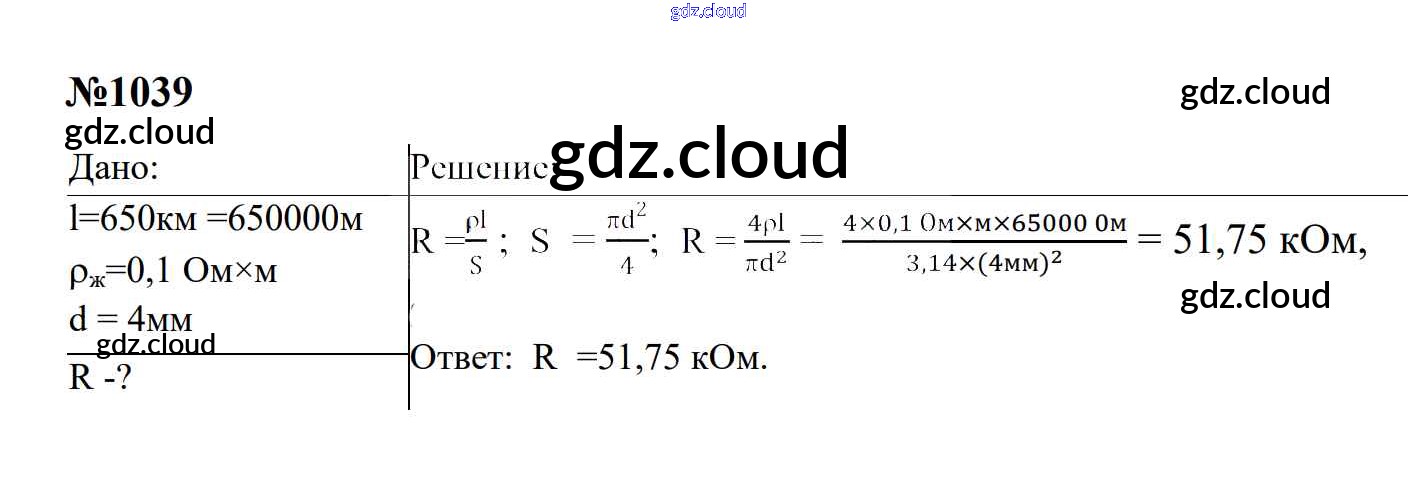 Ответ на задание 1039 Сборник задач Физика за 7, 8, 9 (седьмой, восьмой, девятый) класс Перышкин, Лонцова УМК 2016