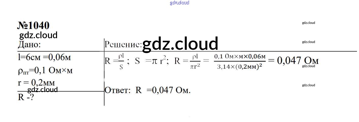 Ответ на задание 1040 Сборник задач Физика за 7, 8, 9 (седьмой, восьмой, девятый) класс Перышкин, Лонцова УМК 2016