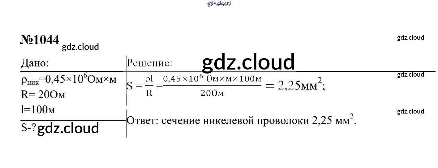 Ответ на задание 1044 Сборник задач Физика за 7, 8, 9 (седьмой, восьмой, девятый) класс Перышкин, Лонцова УМК 2016