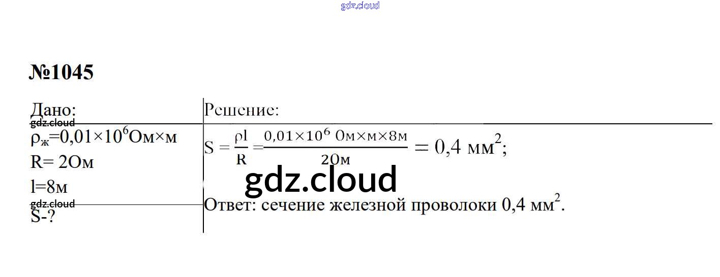Ответ на задание 1045 Сборник задач Физика за 7, 8, 9 (седьмой, восьмой, девятый) класс Перышкин, Лонцова УМК 2016