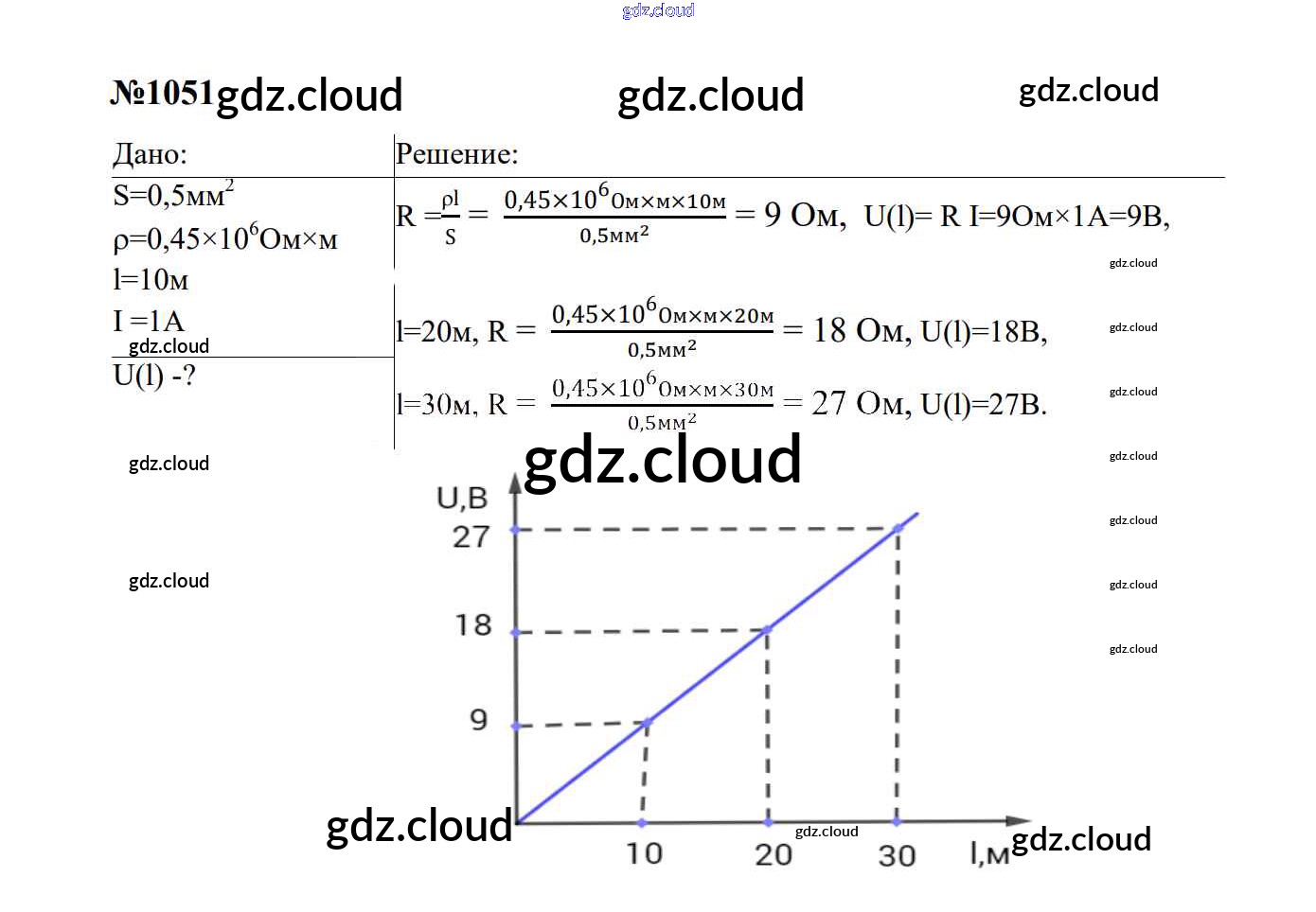 Ответ на задание 1051 Сборник задач Физика за 7, 8, 9 (седьмой, восьмой, девятый) класс Перышкин, Лонцова УМК 2016