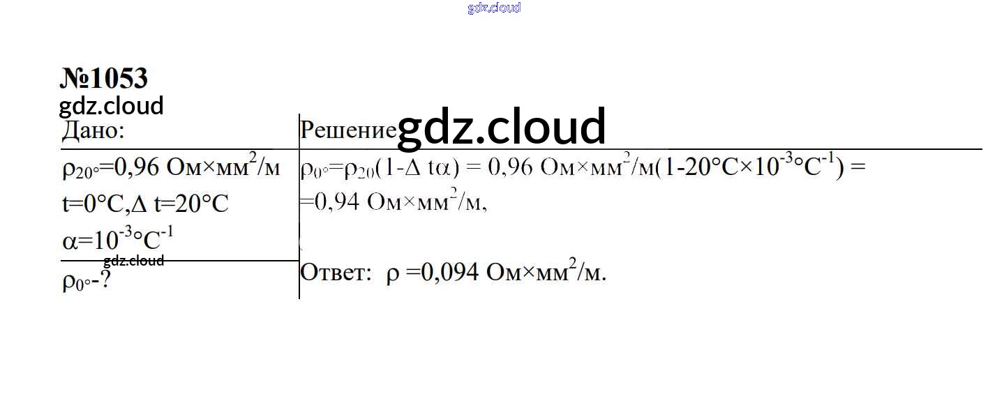 Ответ на задание 1053 Сборник задач Физика за 7, 8, 9 (седьмой, восьмой, девятый) класс Перышкин, Лонцова УМК 2016
