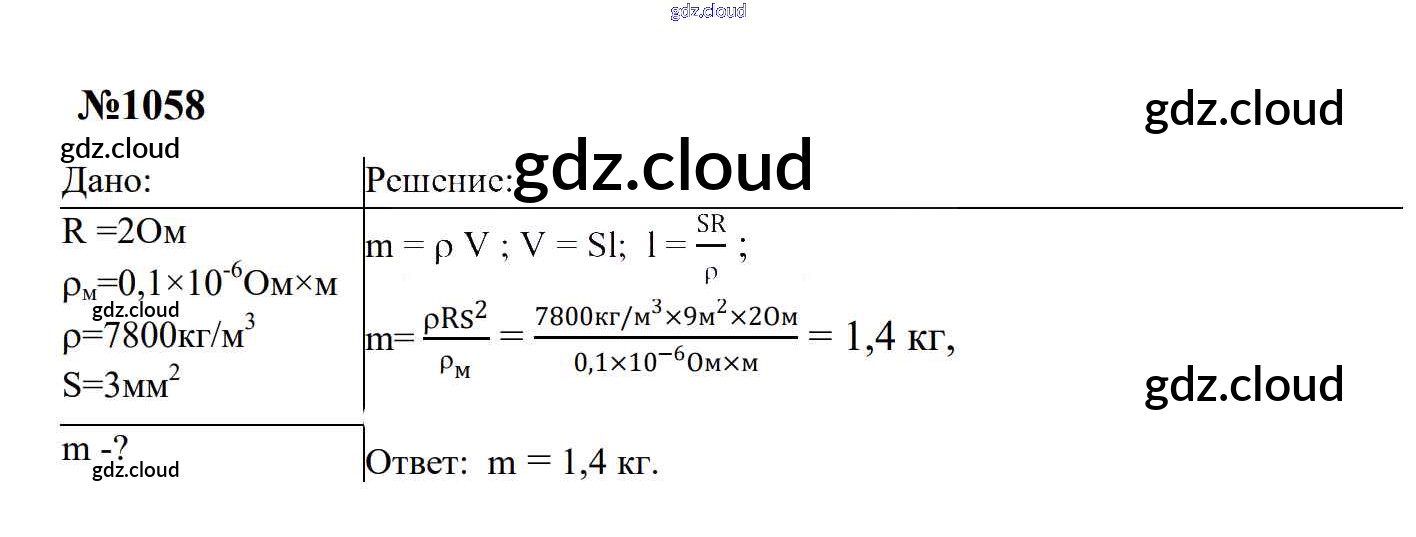 Ответ на задание 1058 Сборник задач Физика за 7, 8, 9 (седьмой, восьмой, девятый) класс Перышкин, Лонцова УМК 2016