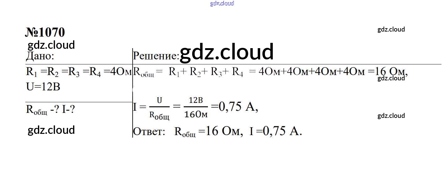 Ответ на задание 1070 Сборник задач Физика за 7, 8, 9 (седьмой, восьмой, девятый) класс Перышкин, Лонцова УМК 2016
