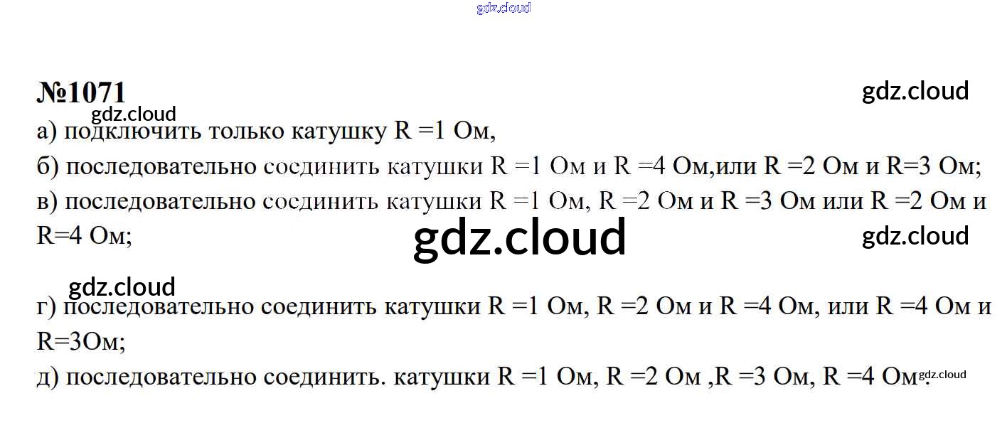 Ответ на задание 1071 Сборник задач Физика за 7, 8, 9 (седьмой, восьмой, девятый) класс Перышкин, Лонцова УМК 2016