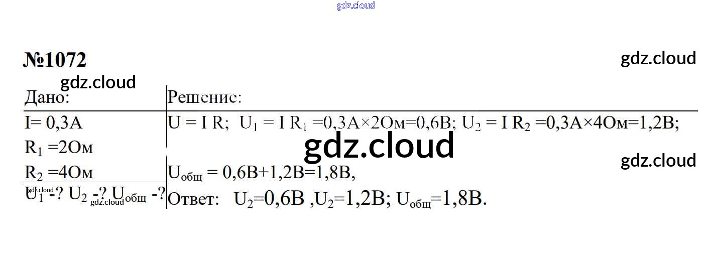 Ответ на задание 1072 Сборник задач Физика за 7, 8, 9 (седьмой, восьмой, девятый) класс Перышкин, Лонцова УМК 2016