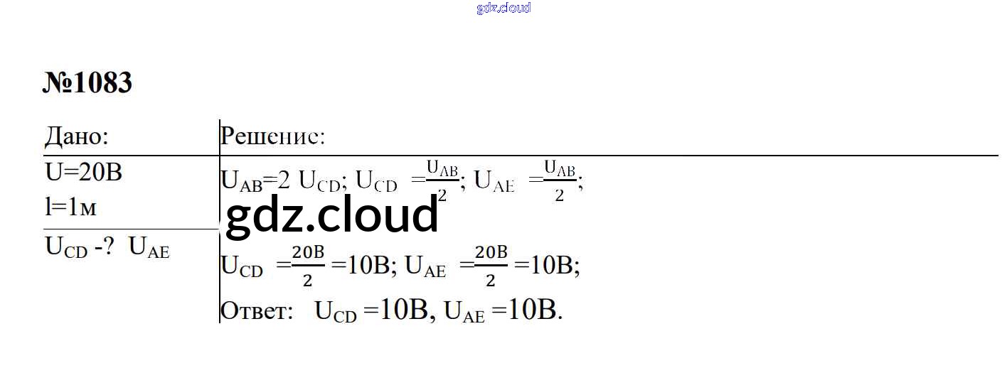 Ответ на задание 1083 Сборник задач Физика за 7, 8, 9 (седьмой, восьмой, девятый) класс Перышкин, Лонцова УМК 2016