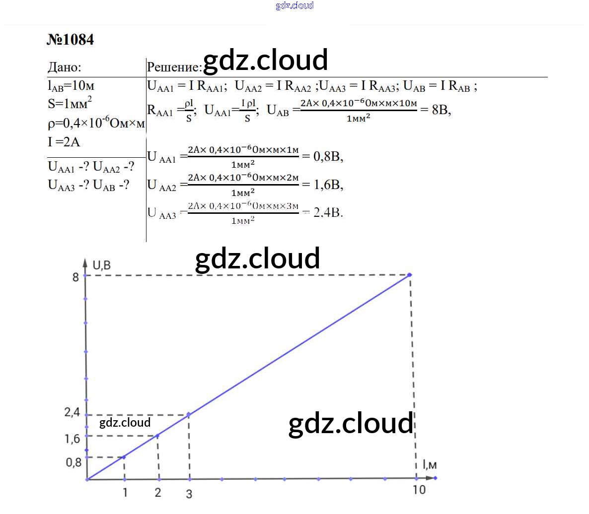 Ответ на задание 1084 Сборник задач Физика за 7, 8, 9 (седьмой, восьмой, девятый) класс Перышкин, Лонцова УМК 2016