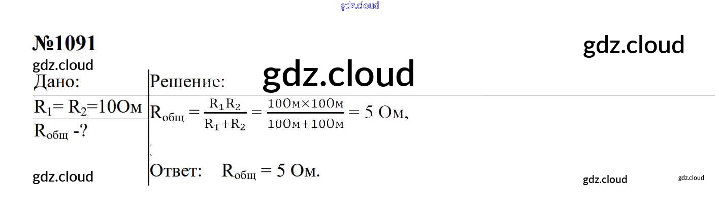 Ответ на задание 1091 Сборник задач Физика за 7, 8, 9 (седьмой, восьмой, девятый) класс Перышкин, Лонцова УМК 2016