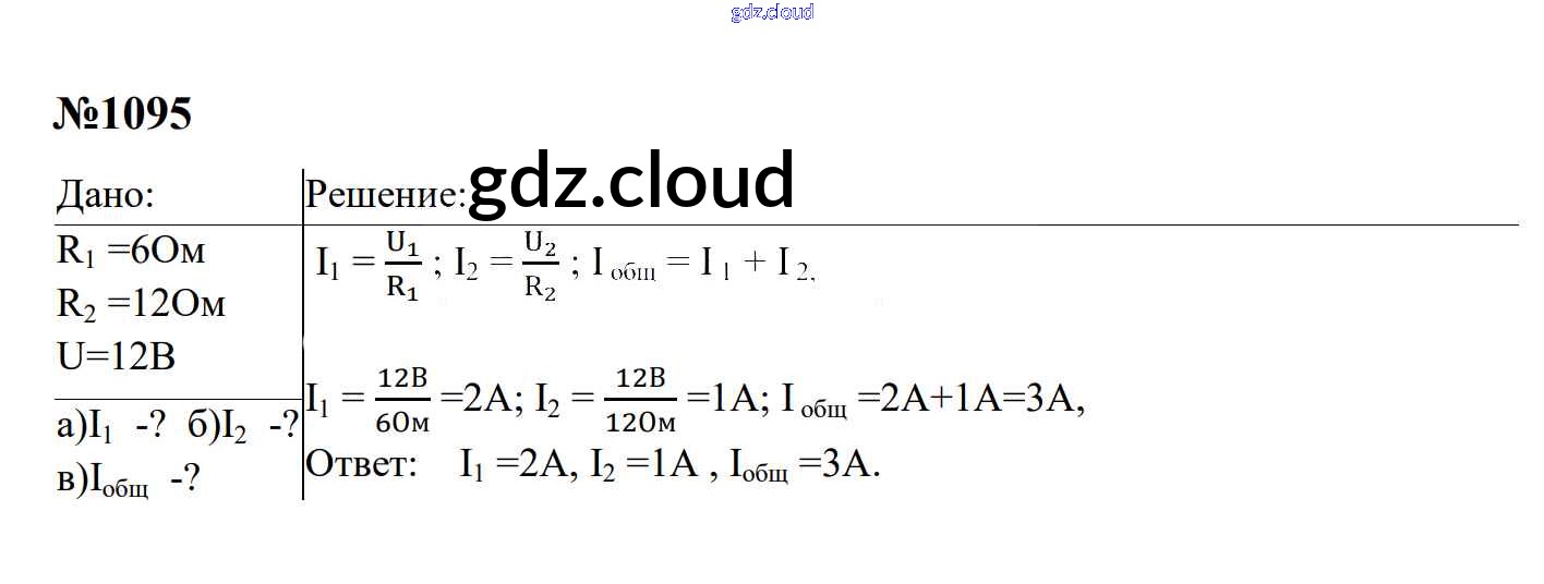 Ответ на задание 1095 Сборник задач Физика за 7, 8, 9 (седьмой, восьмой, девятый) класс Перышкин, Лонцова УМК 2016