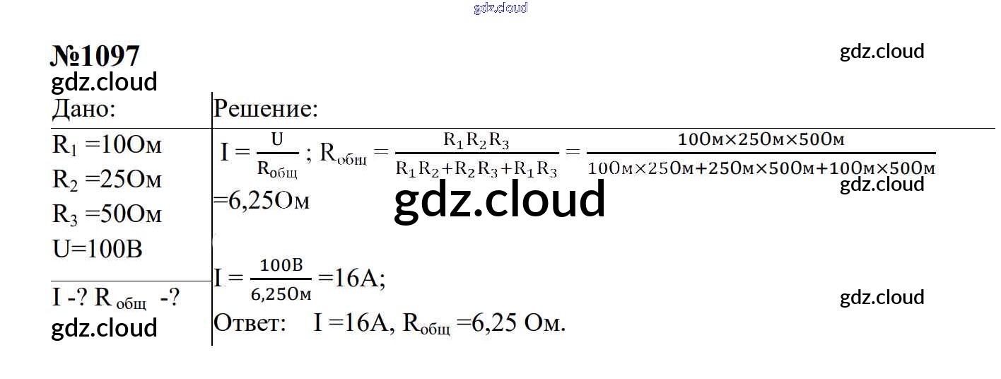 Ответ на задание 1097 Сборник задач Физика за 7, 8, 9 (седьмой, восьмой, девятый) класс Перышкин, Лонцова УМК 2016