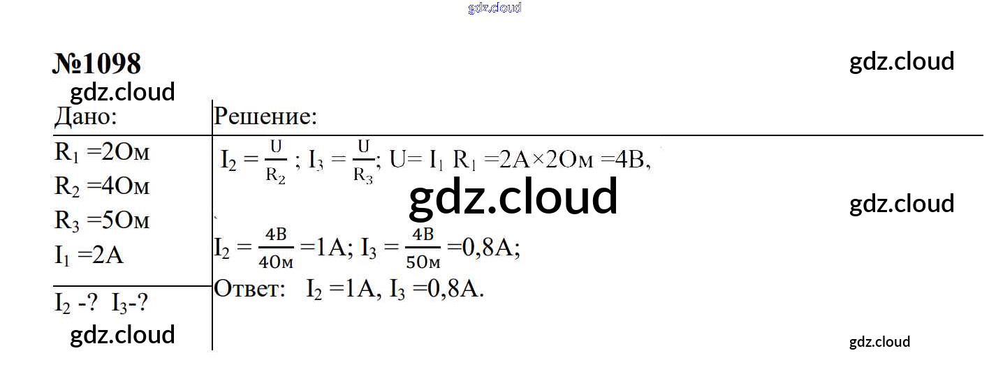 Ответ на задание 1098 Сборник задач Физика за 7, 8, 9 (седьмой, восьмой, девятый) класс Перышкин, Лонцова УМК 2016
