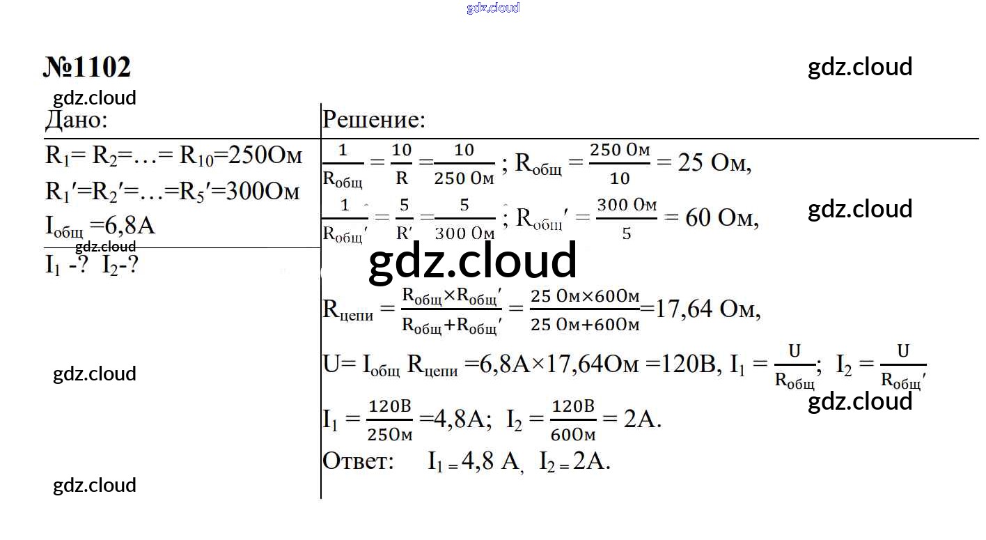Ответ на задание 1102 Сборник задач Физика за 7, 8, 9 (седьмой, восьмой, девятый) класс Перышкин, Лонцова УМК 2016