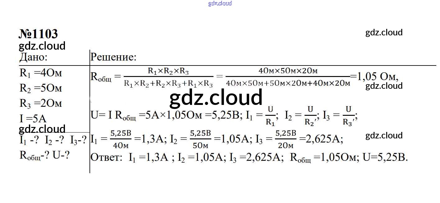 Ответ на задание 1103 Сборник задач Физика за 7, 8, 9 (седьмой, восьмой, девятый) класс Перышкин, Лонцова УМК 2016