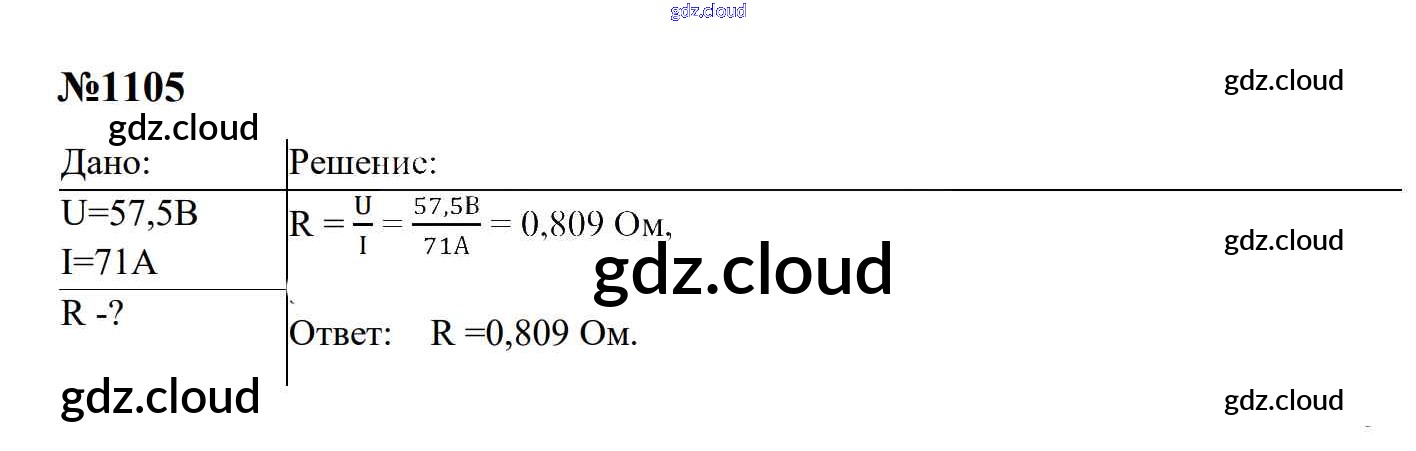 Ответ на задание 1105 Сборник задач Физика за 7, 8, 9 (седьмой, восьмой, девятый) класс Перышкин, Лонцова УМК 2016